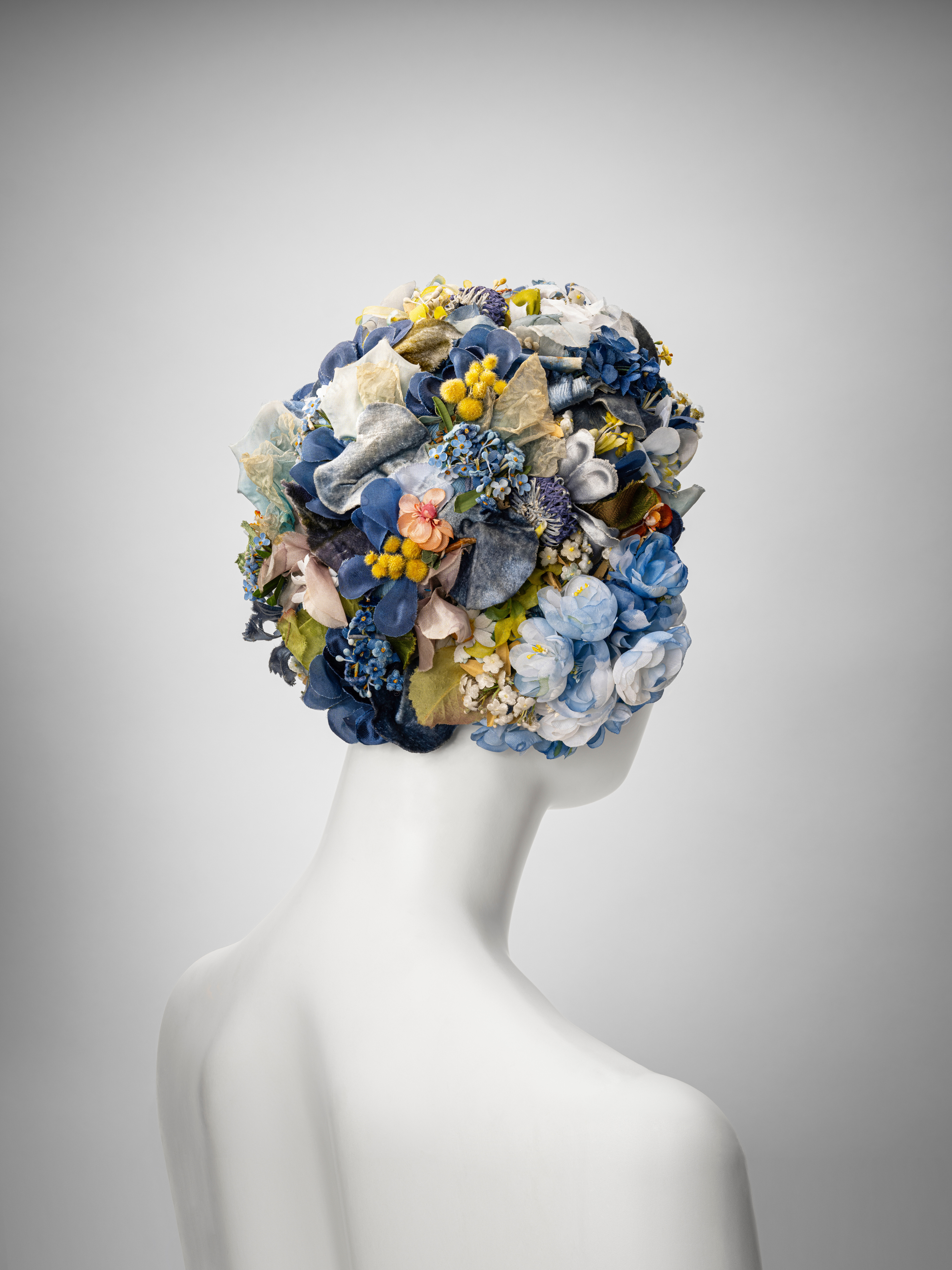 Några av Prinsessan Sofias hårprydnader, som visas i utställningen, är skapade av designern och frisören Matthias Lavesson – som också bidrar med scenografiska inslag i form av överdimensionerade huvudbonader.